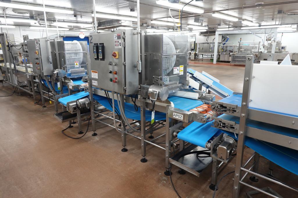 Pizza Topping: Colborne 2-station sauce depositor with denester, Quantum sauce depositor, (5) Quantum waterfall topping applicator with return conveyors, (4) Grote slicers, cheese cubers,